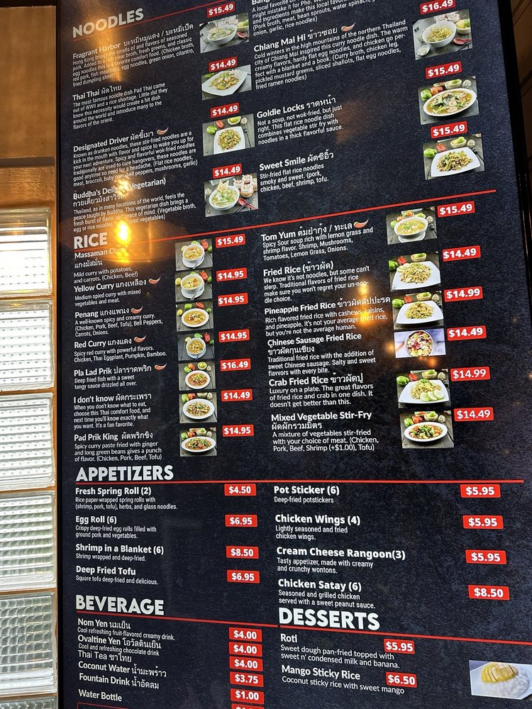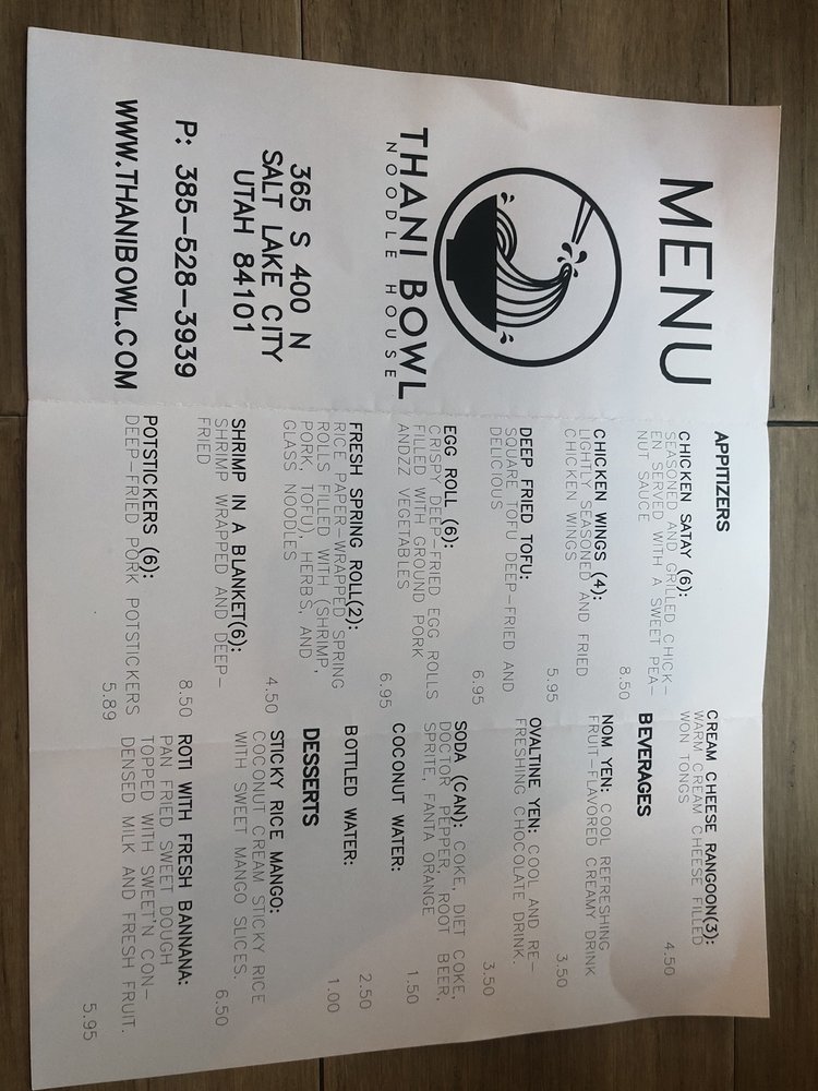Welcome to Thani Bowl Noodle House, a gem nestled in Salt Lake City, known for its authentic Thai noodle soups and comforting dishes. Here, the menu features a delectable range of options that highlight traditional flavors and fresh ingredients. A standout is the fragrant Harbor Red BBQ pork served with egg noodles in a rich broth, offering a beloved combination of savory and aromatic notes that evoke the essence of Thailand.